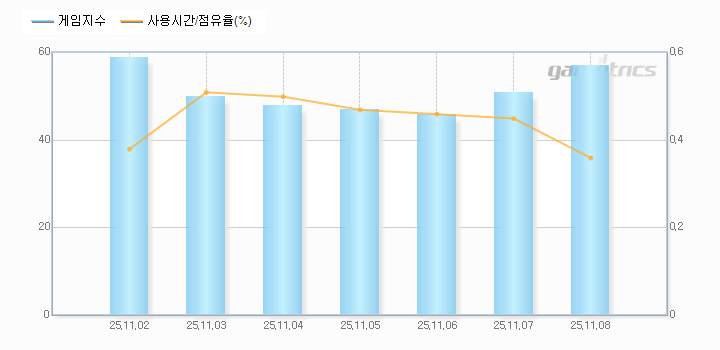 | 보드 장르지수는 게임트릭스에 등록된 보드의 게임사용시간 및 점유율의 추이를 기간별로 검색할 수 있는 서비스입니다. |