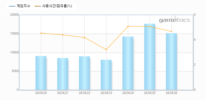 | 스포츠 장르지수는 게임트릭스에 등록된 스포츠의 게임사용시간 및 점유율의 추이를 기간별로 검색할 수 있는 서비스입니다. |
