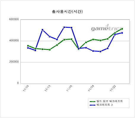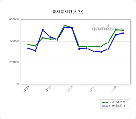 <워크래프트3과 월드 오브 워크래프트 사용시간 비교>