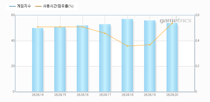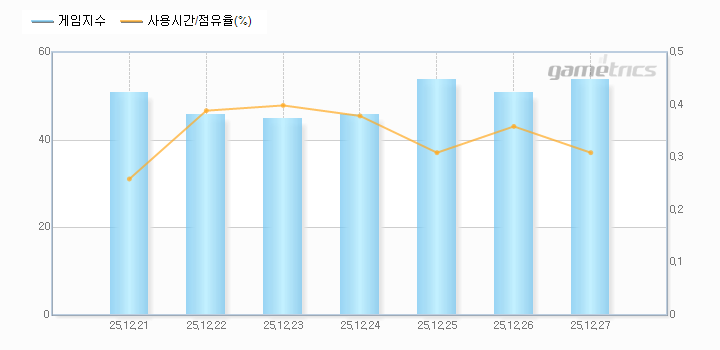 | 보드 장르지수는 게임트릭스에 등록된 보드의 게임사용시간 및 점유율의 추이를 기간별로 검색할 수 있는 서비스입니다. |