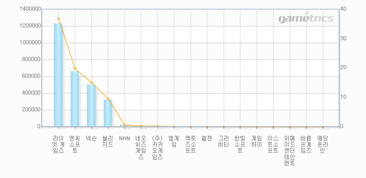 게임사별 시장점유율을 비교하는데 유용한 서비스 입니다.