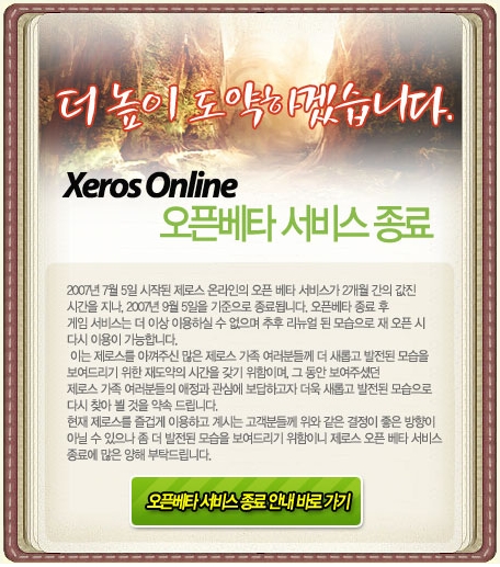 제로스 온라인이 2007년 9월 5일 서비스가 종료됨에 따라 해당 게임의 게임트릭스 DATA 집계를 중단하게 되었음을 알려드립니다.