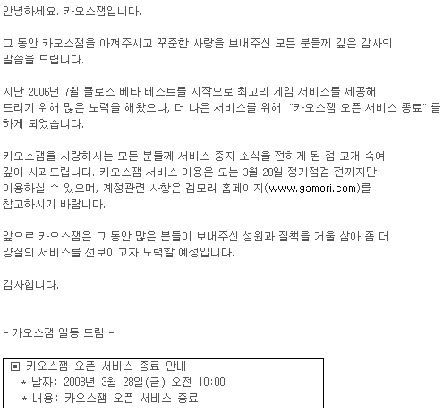 카오스잼이 2008년 3월 28일 오전 10시 서비스가 종료됨에 따라 해당 게임의 데이터 집계를 중단합니다.