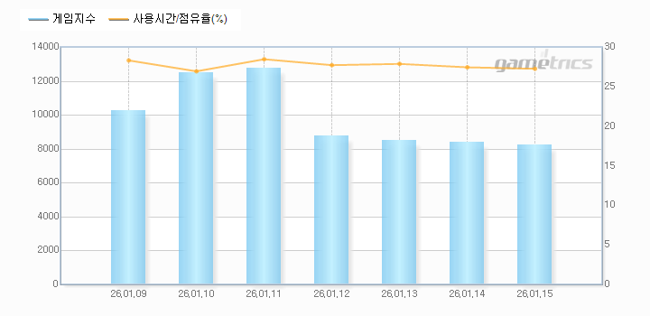 | FPS 장르지수는 게임트릭스에 등록된 FPS의 게임사용시간 및 점유율의 추이를 기간별로 검색할 수 있는 서비스입니다. |