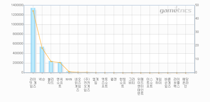 게임사별 시장점유율을 비교하는데 유용한 서비스 입니다.