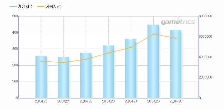 | 종합게임지수는 기준일(2003년 4월 1일)의 총 사용시간을 100으로 보고 일별게임 이용량을 비교한 수치를 말합니다. |